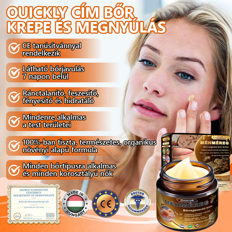 Bőrgyógyászok által klinikailag tesztelve, a Daasry® méhméreg átfogó krém már 7 napon belül látványos javulást mutathat a ráncok és a bőr megereszkedése terén.